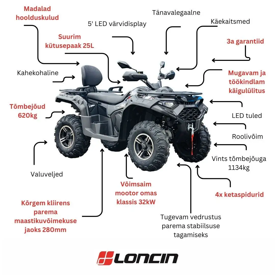 Loncin ATV-l on 34% rohkem võimsust ja 15% rohkem pöördemomenti kui enamikul konkurentidel.